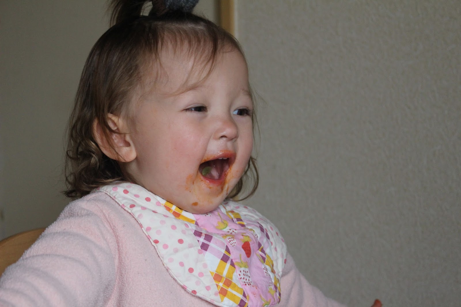 Ayumi, your little Honoka is certainly an enthusiastic diner! I like pasta, too. (That pretty bib is a wise addition to her wardrobe.)